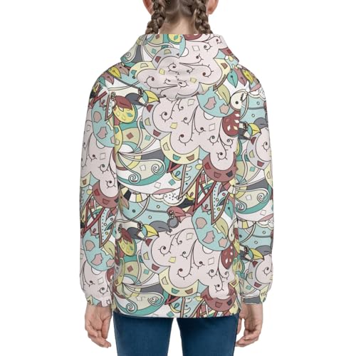 Ethnic Colorful Doodle Texture Kids Pullover Hoodies Boys Zip Up Sweatshirts Girls Athletic Clothes with Pocket
