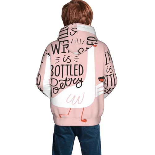 Goose Holding Wineglass with Red Wine Kids Pullover Hoodies Boys Sweatshirts Girls Athletic Clothes with Pocket