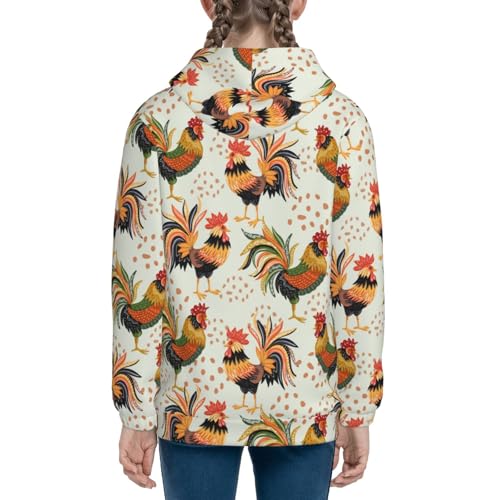 Colorful Roosters Kid Hoodies Boys Zip Up Sweatshirts Girls Pullover with Pocket