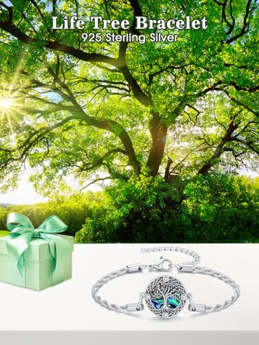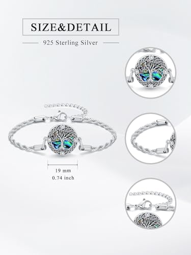 Tree of Life/Compass Bracelet 925 Sterling Silver Adjustable Abalone Ashes Jewelry Gifts for Women