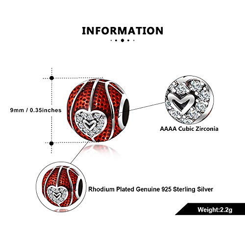 cherish Basketball Charm for Bracelet or Necklace for Women by Ginger Lyne | European Style Bead Clear Cubic Zirconia Red Sterling Silver | Athletic Gifts for Her