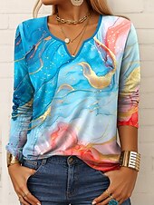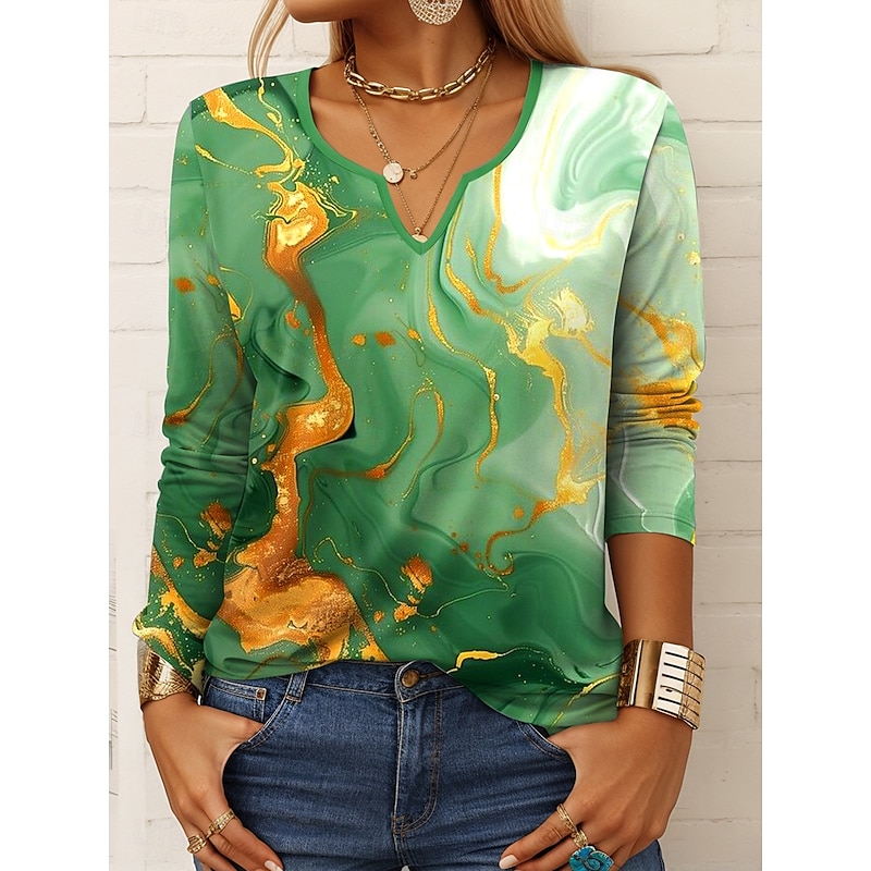This Women's T Shirt Ombre Graphic Geometric Vintage modern Casual Long Sleeve Notched Neck Regular Tops Daily Print Army Green Blue Sky Blue Green Summer Spring Fall combines elegant design with practical functionality. Every detail has been carefully considered to ensure you get the best possible experience. The finest construction means this product will serve you well for years to come.