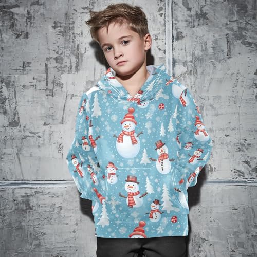 Kids Hoodies Sweaters Christmas Xmas Snowman Hooded Sweatshirts with Big Pockets for Boys Girls B0400073