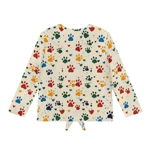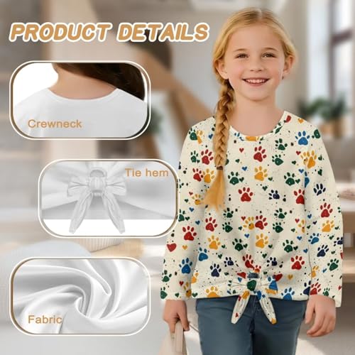 Girl Long Sleeve Shirt Round Neck Pullover Sweatshirts for Tween Girls Casual Blouses with Tie Hem 5-12 Year Old