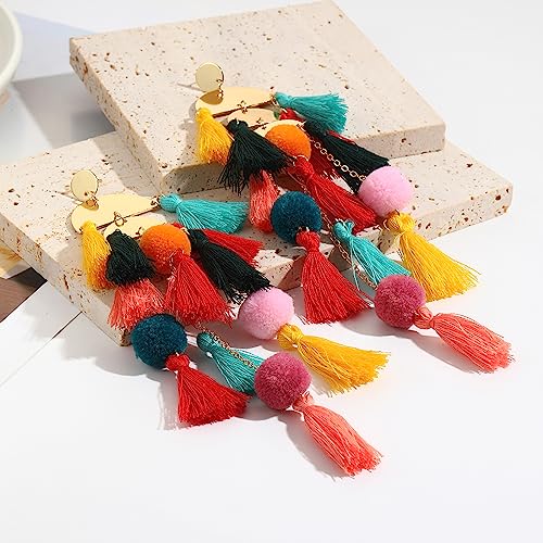 • ★【THE ULTIMATE GIFT】★: Tassel earrings multicolor. ultimate gifts for Birthdays, Anniversaries, Valentine's Day, Mother's Day or any other festivals, truly popular with women. Whether you're dressing up a plain white tee or a show-stop print, these colorful tassel earrings will complete your every look.They would also be a fun and festive addition to your wardrobe.