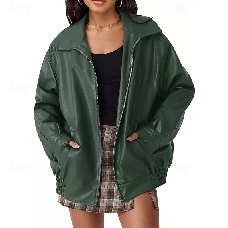 Why Choose Women's Casual Jacket snug snug Zipper Pocket Fashion Outdoor Plain Going out Weekend Zipper Regular Lapel Regular Fit Long Sleeve Outerwear Black Pink Dark Green Fall Winter?