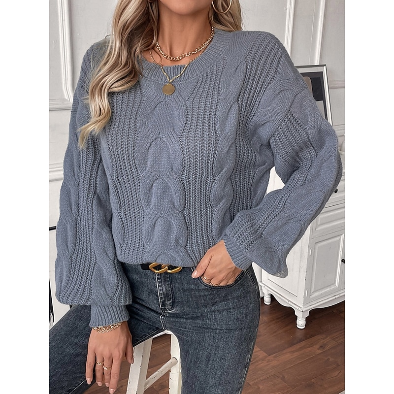 Why Choose Women's Sweater Casual tender Pure Color Cable Crew Neck Knitted Long Sleeve Regular Tops Knit Outdoor Daily Weekend Khaki Gray Fall Winter?