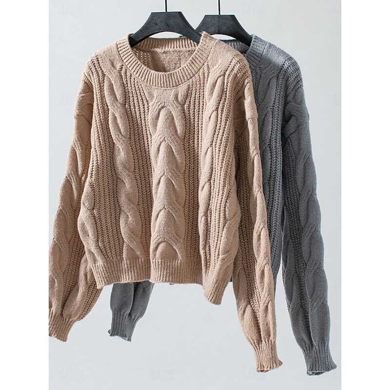 This Women's Sweater Casual supple Pure Color Cable Crew Neck Knitted Long Sleeve Regular Tops Knit Outdoor Daily Weekend Khaki Gray Fall Winter combines elegant design with practical functionality. Every detail has been carefully considered to ensure you get the best possible experience. The finest construction means this product will serve you well for years to come.