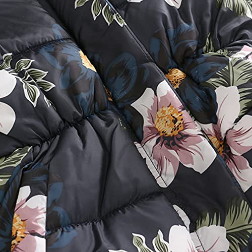 Kids Girls Boys Light Puffer Floral Print Hoodie Zip Up Fleece Fall Winter Jacket Puffer Jacket Hooded (Navy, 6-7 Years)