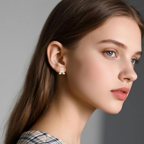 Gold Initial Earrings Stud, Colorful Rhinestone Letter Earrings Stud Cute Monogram Jewelry Alphabets from A-Z Gift Idea of the Earrings