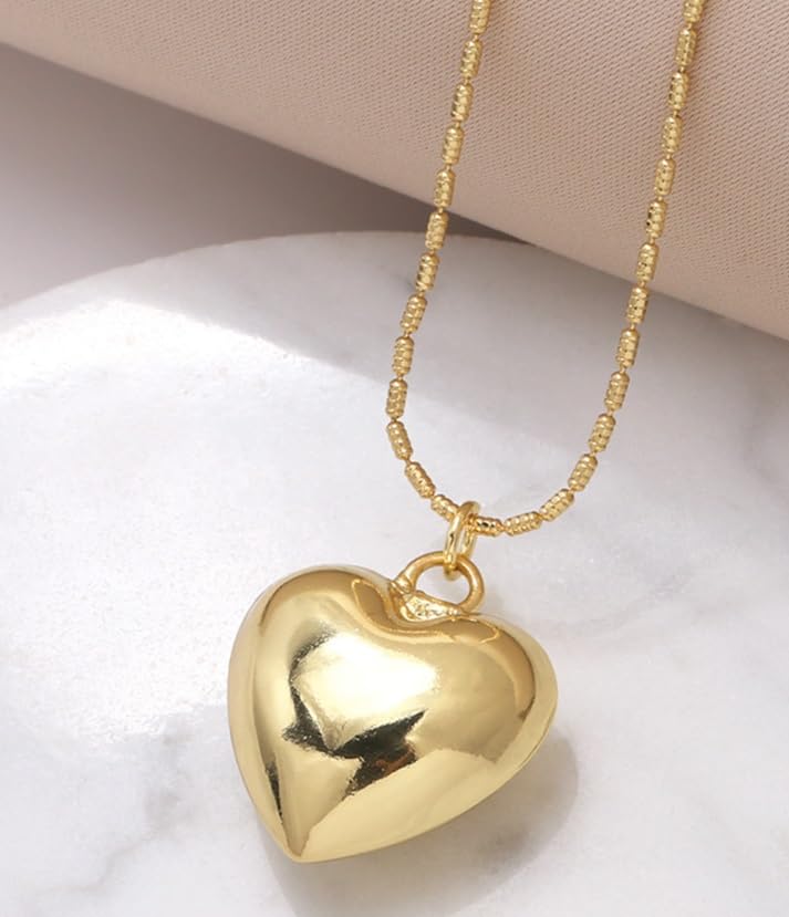 Puffy Puffed Heart Necklace – 14K Gold Plated Heart Chain with Charm, Hypoallergenic and Water-Resistant, Tarnish-no-cost Necklace, Elegant Chain Pendant Heart Necklace for Women