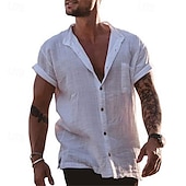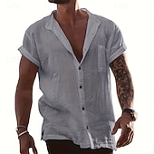 More information about Men's Shirt Summer Shirt Casual Shirt Beach Shirt Button Up Shirt White Sky Blue Gray Short Sleeve Plain Stand Collar Vacation Hawaiian Clothing Apparel Fashion Casual cushy