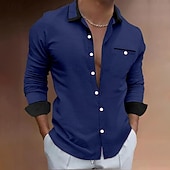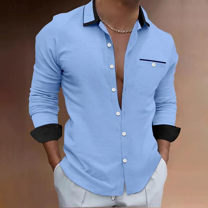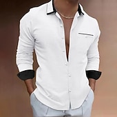 Highlights [Fabric] : Crafted from a breathable polyester fabric, this men's shirt is designed for comfort during both spring and summer months. Its moisture-wicking properties ensure a fresh feel throughout the day. [Fit] : This shirt boasts a sleek, long-sleeve design with a slim fit, creating a sharp and tailored appearance suitable for fashion-conscious individuals. [Design Highlights] : The shirt features classic long sleeves and a solid plain pattern with contrasting black collar and cuffs, offering a up-to-date twist on a traditional piece. The single breast pocket with discrete black trim adds an extra touch of sophistication. [Occasions] : Ideal for a variety of settings, this versatile shirt can be worn for daily activities, vacations, or casual outings. Its trendy yet comfortable design makes it a perfect choice for both leisure and semi-formal occasions. [Sizing] : Available in a range of sizes including S, M, L, XL, 2XL, and 3XL, this shirt is designed to fit a broad spectrum of body types, ensuring the right fit for everyone.