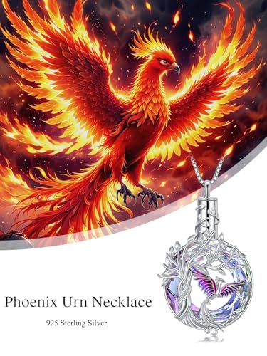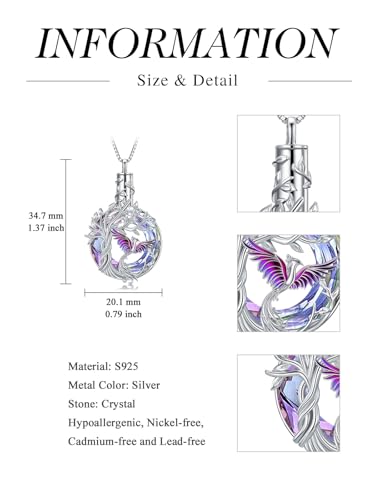 TOUPOP Phoenix Urn Necklace Cremation Jewelry for Ashes 925 Sterling Silver Crystal Phoenix Pendant with Funnel Filler Memorial Jewelry Gifts for Women