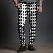 More information about Men's Houndstooth Dress Pants Mid Waist Business Casual Formal Dailywear Zipper Pocket Summer Spring Fall 3D Print Black And White