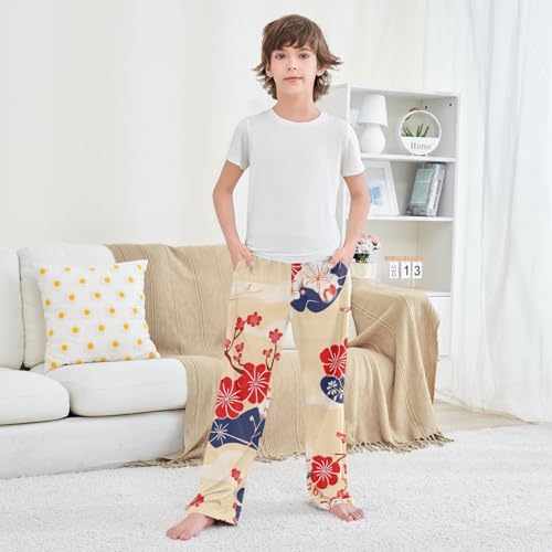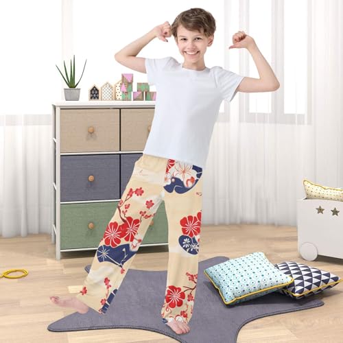 Spring Plum Flowers Boys Long Pants gentle Trousers Elastic Waist Kids Lounge Bottoms with Pockets S-XL