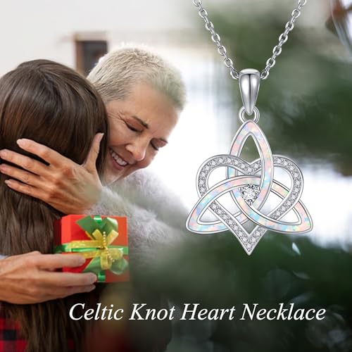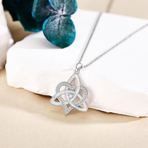 YAFEINI Celtic Knot Heart Necklace 925 Sterling Silver Opal Triquetra Necklace Irish Celtic Jewelry Birthday Present for Women