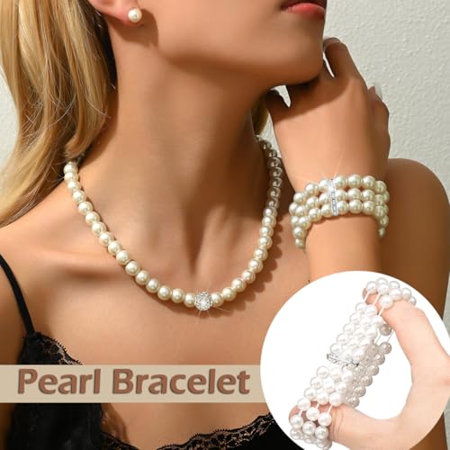 sizzling ! 18 Pcs Pearl Jewelry Set - Women's 1920s Style Simulated Pearl Earrings, Necklace and Bracelet Gift Set