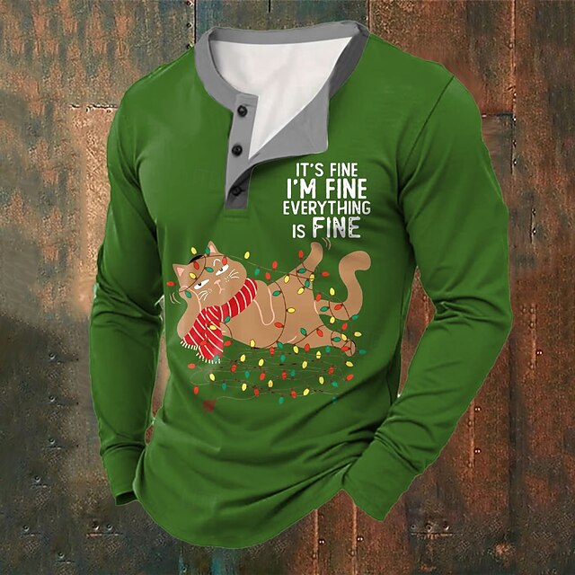 $24.99 - Christmas Men's Funny Christmas Henley T Shirt Cat Fashion Casual Print Henley Party Street Daily Red Green Long Sleeve Henley Winter Spring & Fall Clothing Apparel Normal S M L XL XXL XXXL 2025. Shop for cheap Christmas Animal Outfit online? Buy at lightinthebox.com on sale today!