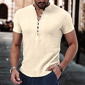 More information about Men's Button T Shirt T Shirt Henley Shirt Tee Short Sleeve Henley Summer Spring Plain Fashion Designer Basic Buttons Vacation Street Going out Apricot Black White Top Tee for Men
