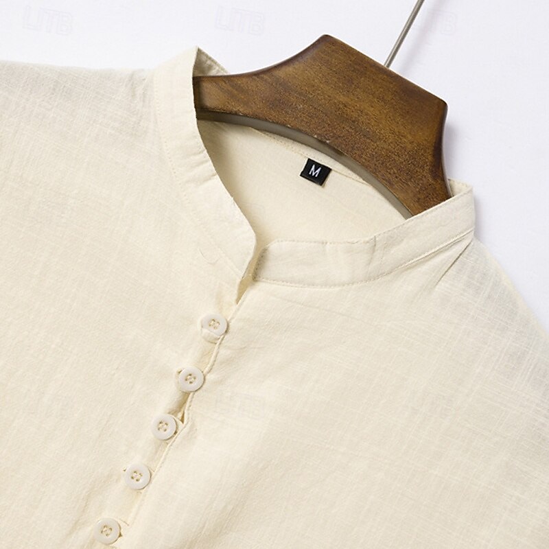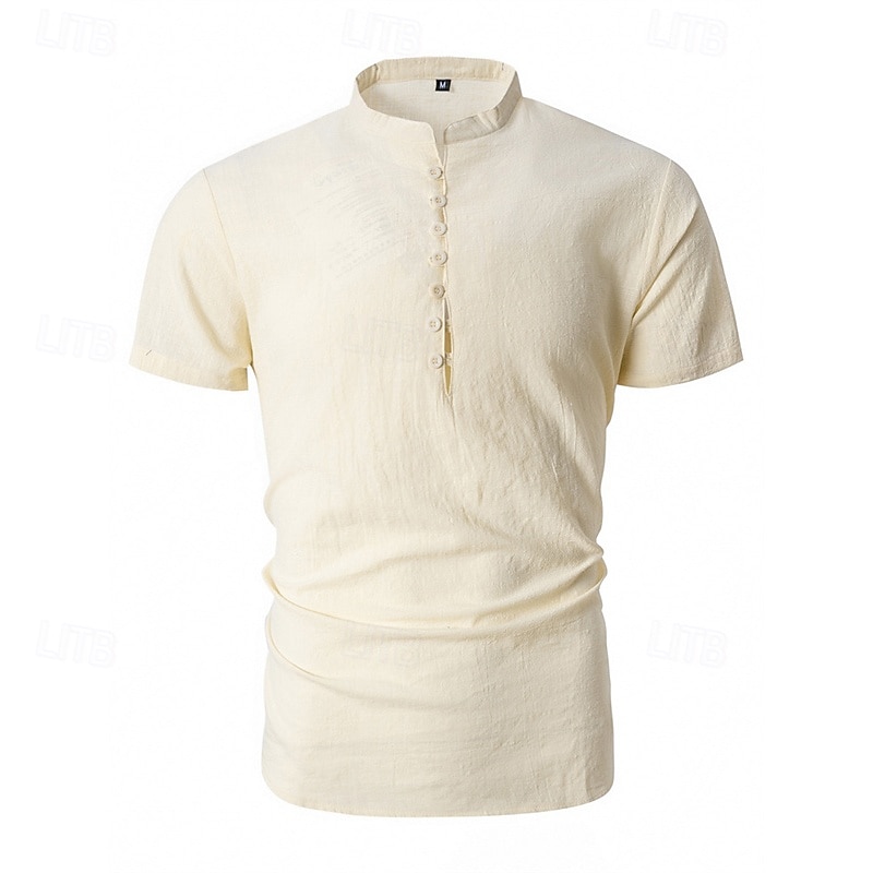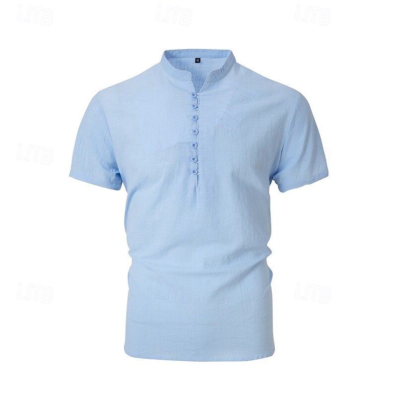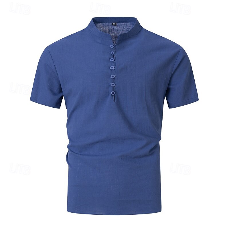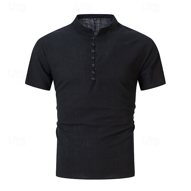 Highlights - flawless for the seasons of Spring and Summer - Short sleeves for a relaxing fit - Designed for men with a basic style - Features a Henley Shirt top with button design - Ideal for vacation occasions