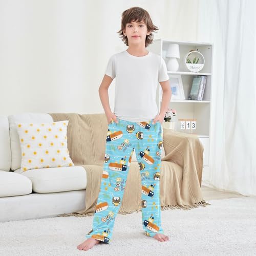 ZZXXB Submarine and Bear Boys Long Pants gentle Trousers Elastic Waist Kids Lounge Bottoms with Pockets S-XL