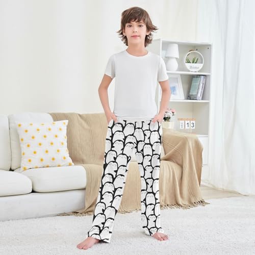 ZZXXB Cartoon Penguin Print Boys Long Pants gentle Trousers Elastic Waist Kids Lounge Bottoms with Pockets S-XL