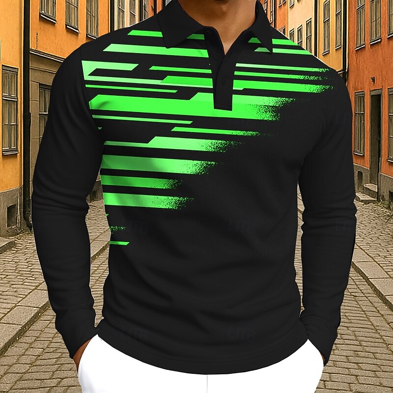 Why Choose Men's Abstract Geometic Polo Long Sleeve Polo Shirts Lapel Casual Street Athleisure Daily Wear 3D Print Buttons Spring Fall Winter Lake blue Yellow Red?