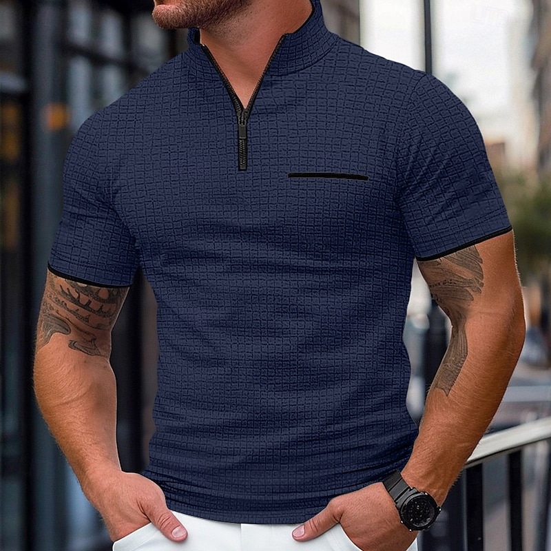 This Men's Waffle Polo Shirts Zip Polo Casual Holiday Quarter Zip Short Sleeve Fashion Basic Plain Quarter Zip Summer Spring Regular Fit Black White Navy Blue Orange Waffle Polo Shirts combines elegant design with practical functionality. Every detail has been carefully considered to ensure you get the supreme possible experience. The top-grade construction means this product will serve you well for years to come.