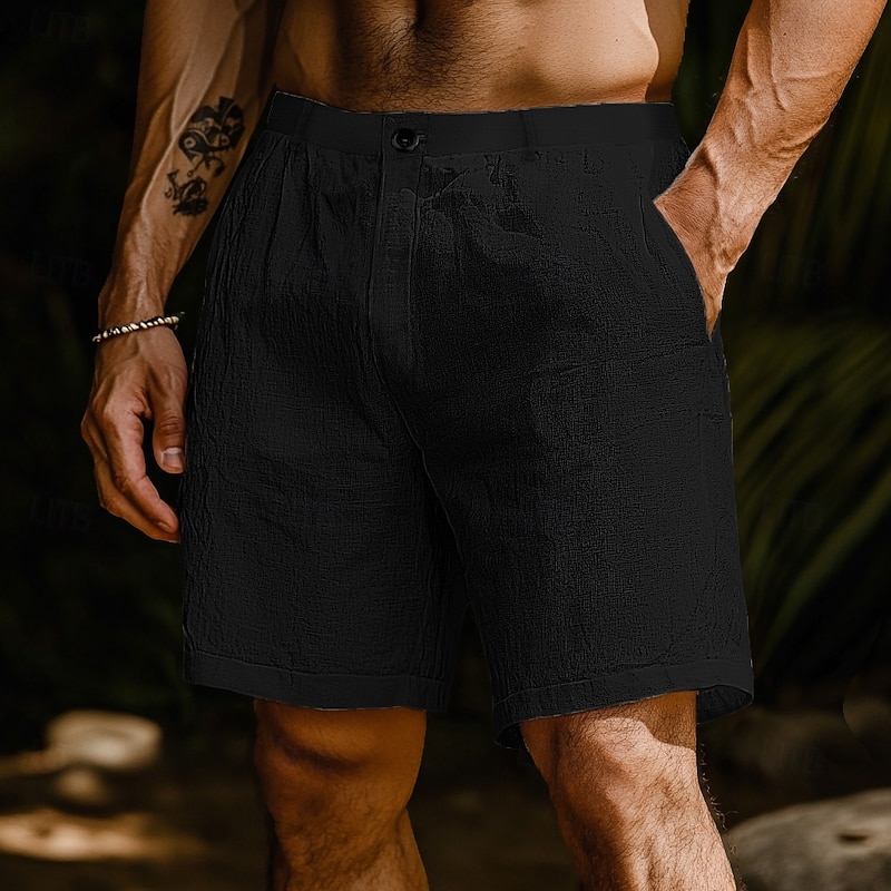$24.99 - Men's Shorts Linen Shorts Summer Shorts Beach Shorts Pocket Elastic Waist Straight Leg Plain Comfort Breathable Knee Length Outdoor Business Daily Fashion Retro Vintage Black Navy Blue 2025. Shop for cheap Retro online? Buy at lightinthebox.com on sale today!