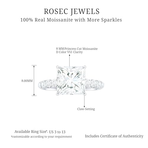 sizzling ! Certified Moissanite 8mm Princess Cut Engagement Ring, D Color Vs1 Clarity, 3 Carat Moissanite Ring - Ready To Gift