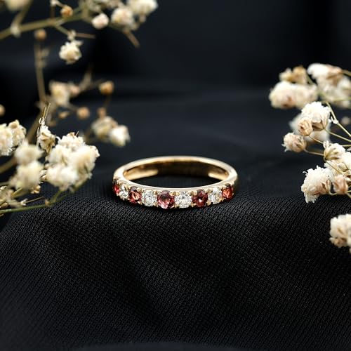 Real Pink Tourmaline Half Eternity Band, AAA Quality, Certified Tourmaline Diamond Wedding Ring For Women - Ready To Gift