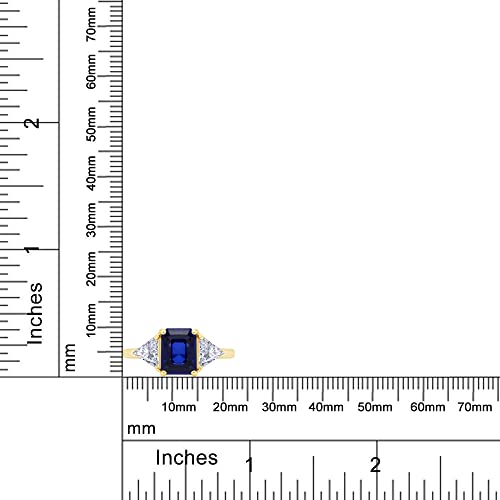 3 Stone Rings for Women Center 8X6MM Emerald Cut Simulated Blue Sapphire with White Topaz Statement Promise Ring in 14K Gold Plated 925 Sterling Silver Jewelry Gift for Her