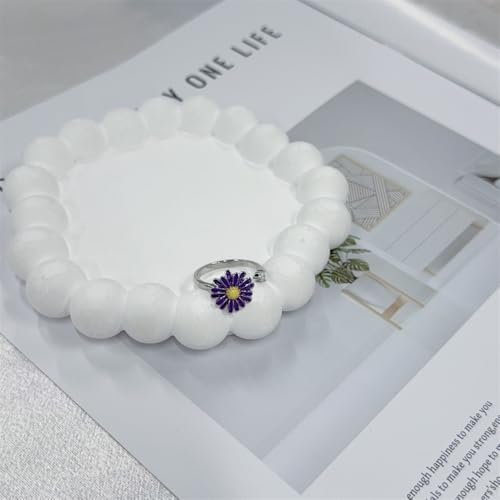 OIDIMS Purple Daisy Fidget Ring exceptional Crystal CZ Wrap Finger Spinner Rings Sunflower Adjustable Open Wedding Band Stackable Rotating Calming Worry Anxiety Stress Relief Rotating Jewelry for ADHD