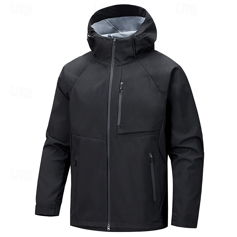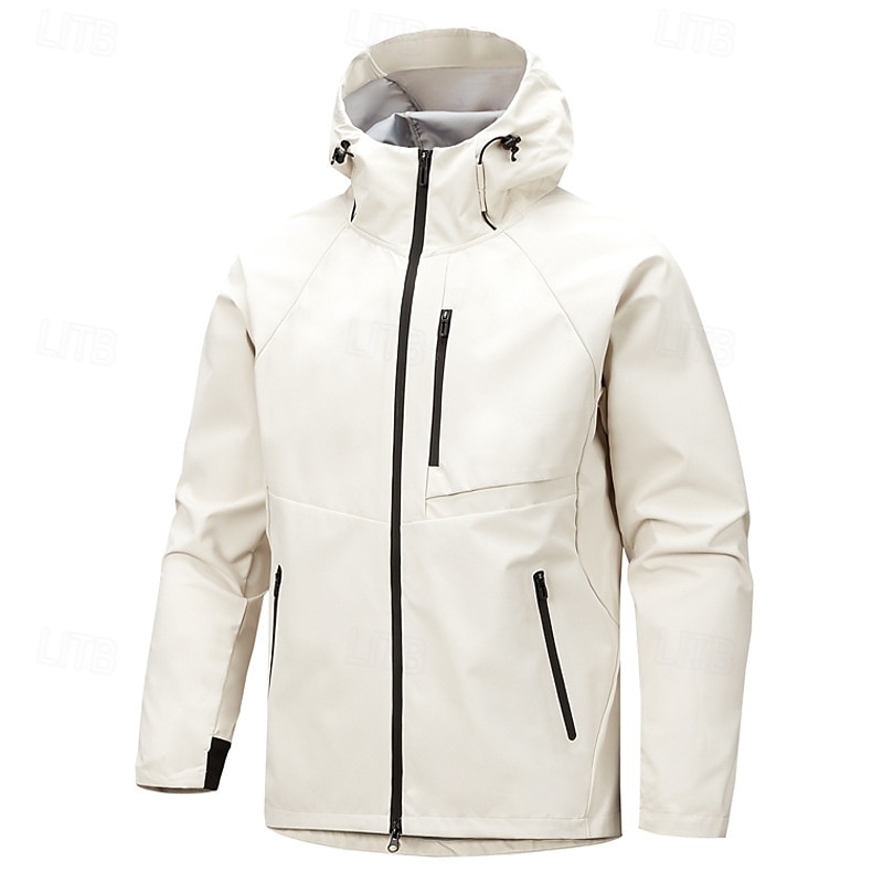 More information about Men's Softshell Jacket Sport Coat Hiking Jacket Rain Jacket Sports Outdoor Camping & Hiking Waterproof Windbreaker Zipper Pocket Spring & Fall Solid Color Active Hooded Regular Black White Green