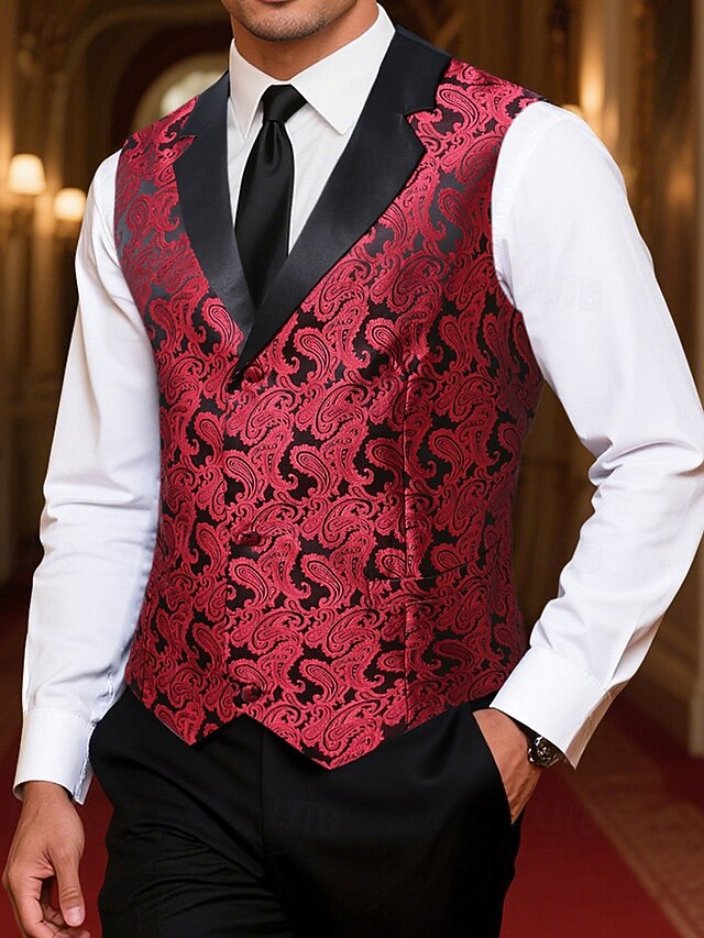 Why Choose Men's Vest Waistcoat Gilet Vacation Party Business Fashion Casual Spring Fall Pocket Buttons Polyester snug Paisley Single Breasted One-button Peaked Lapel Regular Fit Red Vest?