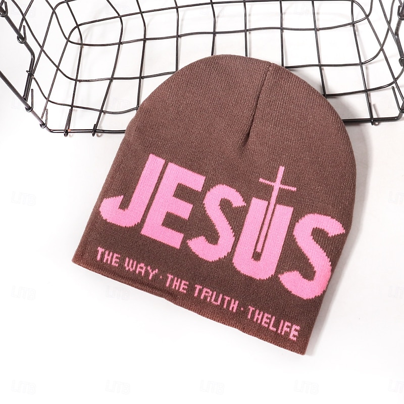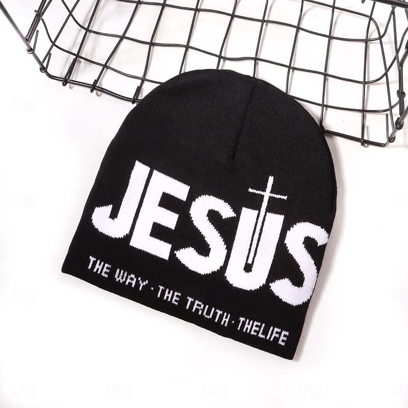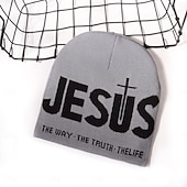 Why Choose Men's Unisex Beanie Hat Winter Hats Beanies Skull Cap Knit Hat Black Grey Yellow Acrylic Fibers Jacquard Knitted Cozy Halloween Daily Wear Festival Letter Cross Jesus heated?
