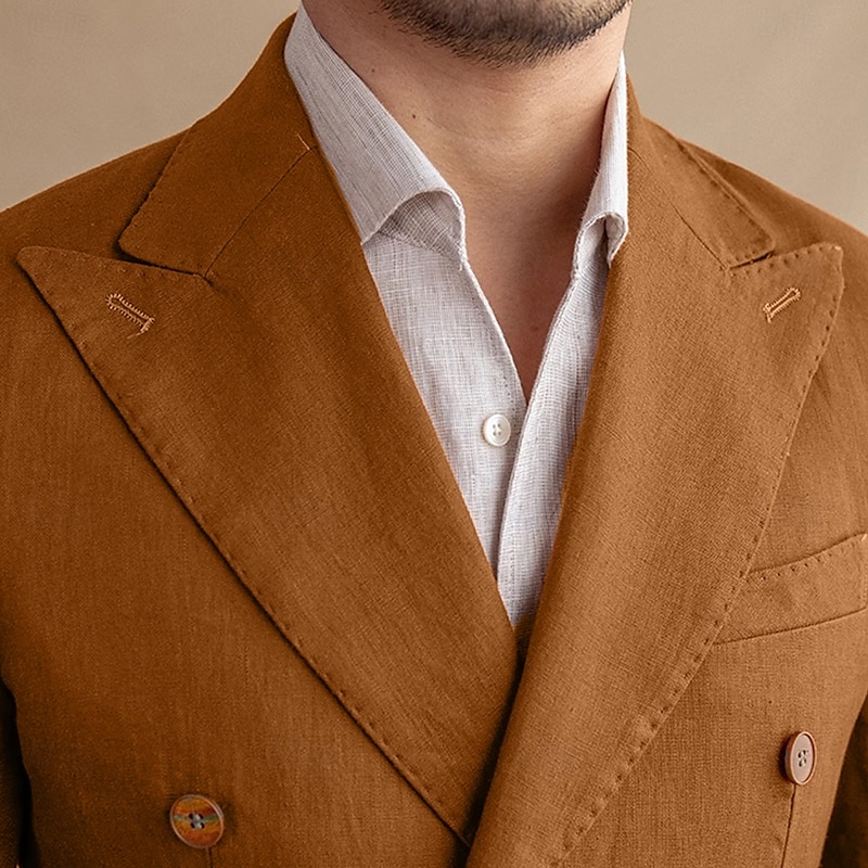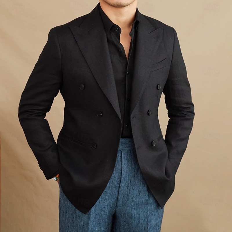 $151.99 - Men 100% Linen Blazer Peak Lapel Formal Wedding Christmas Elegant Vintage Summer Spring Solid Color Pocket Plain Double Breasted Blazer Black Orange Army Green 2025. Shop for cheap Men's Elite Outerwear online? Buy at lightinthebox.com on sale today!