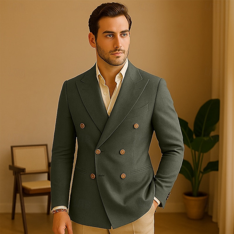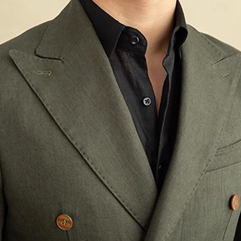Why Choose Men 100% Linen Blazer Peak Lapel Formal Wedding Christmas Elegant Vintage Summer Spring Solid Color Pocket Plain Double Breasted Blazer Black Orange Army Green?