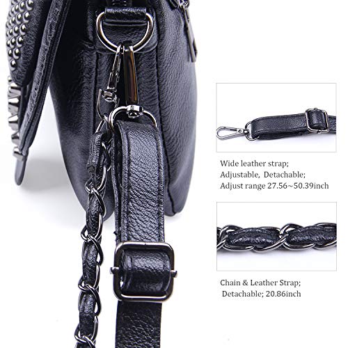 SUKUTU Womens Punk Skull Rivet Shoulder Bag PU Leather Goth Crossbody Bag with Chain Wallet Purse for Girls