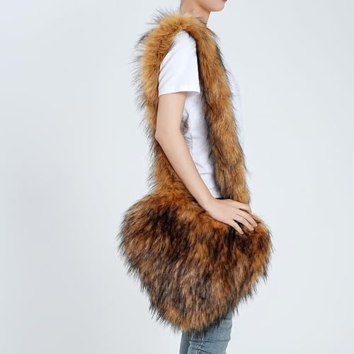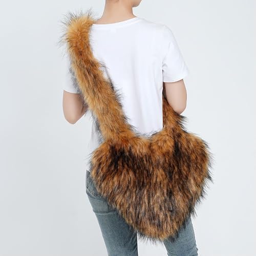 Why Choose Womens Faux Fur Shoulder Bag Furry Purse Handbag Crossbody Bag Heart Shaped with Shoulder Strap?