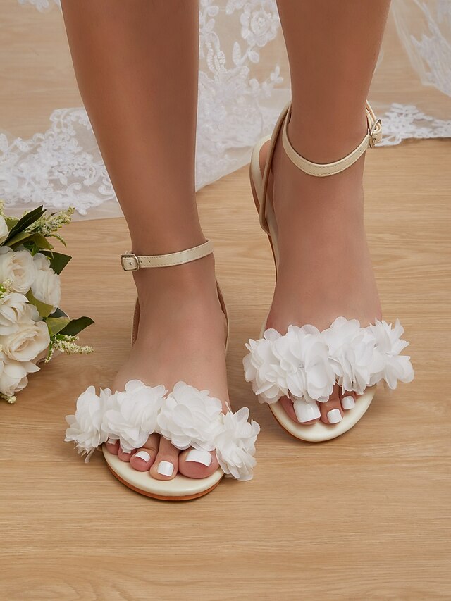 Why Choose White Floral Open-Toe Flat Sandals with Ankle Strap for Women - relaxing Casual Summer Wear and Wedding?
