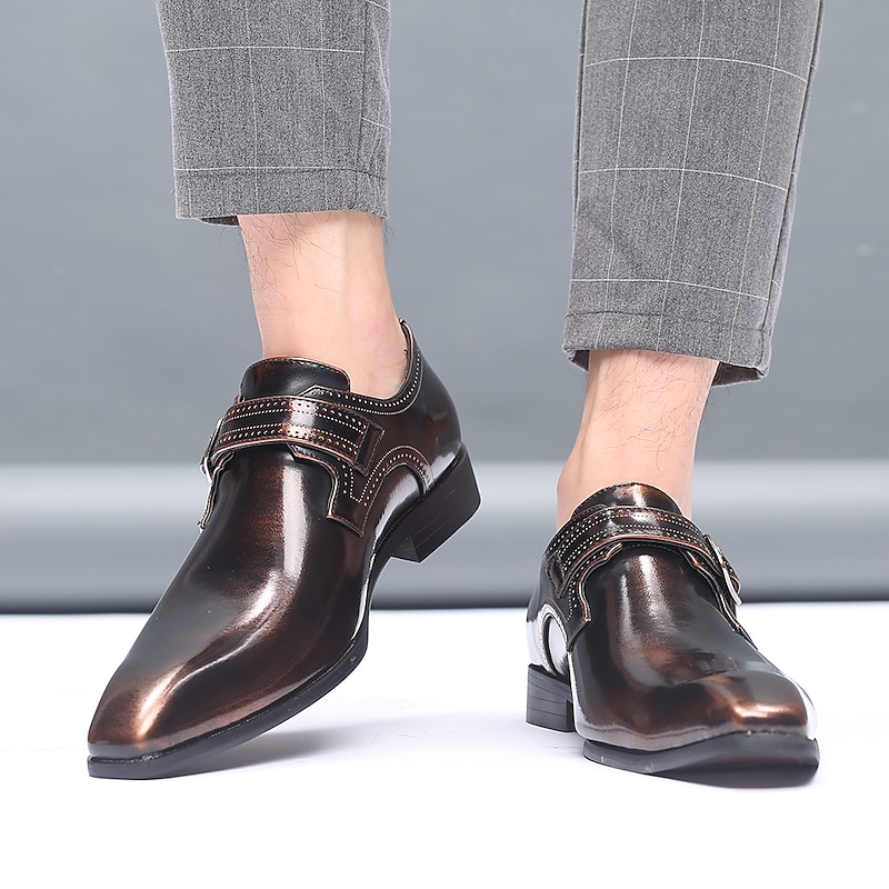 Highlights [Fabric] : Made with premium PU upper materials, these men's Oxfords provide a refined look with a smooth and durable finish. The shoes boast a sleek combination of style and comfort, perfect for both formal and semi-formal occasions. [Fit] : Featuring a classic pointed toe design, these shoes offer a up-to-date silhouette that adds a touch of sophistication to any outfit. The sleek construction ensures a comfortable fit that caters to long hours of wear. [Design Highlights] : These shoes present a vintage British style with a standout monk strap adorned with a distinctive buckle. This design element not only enhances the aesthetic appeal but also provides practical adjustability, ensuring a secure fit. [Occasions] : Perfect for Christmas gatherings, office settings, and professional environments, these trendy dress shoes are versatile enough for any special occasion. They seamlessly blend classic charm with contemporary style, making them suitable for a range of seasonal events. [Size Range] : Available in a variety of sizes from US6-12, these shoes offer a wide range of fittings to accommodate different preferences. Whether you need a smaller size or a larger fit, these Oxfords are crafted to provide the perfect balance of elegance and comfort.