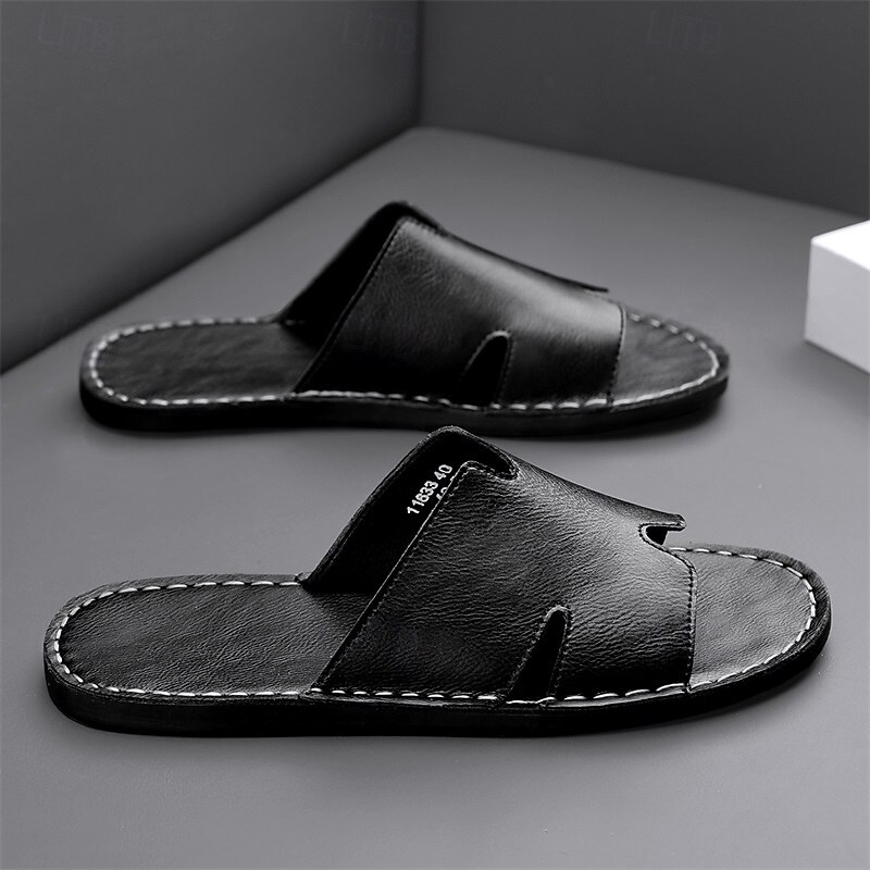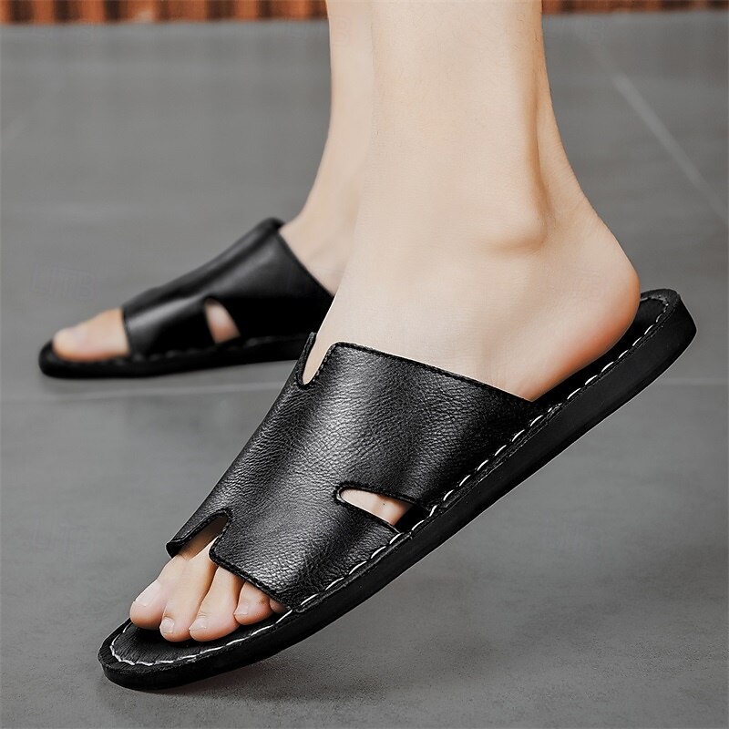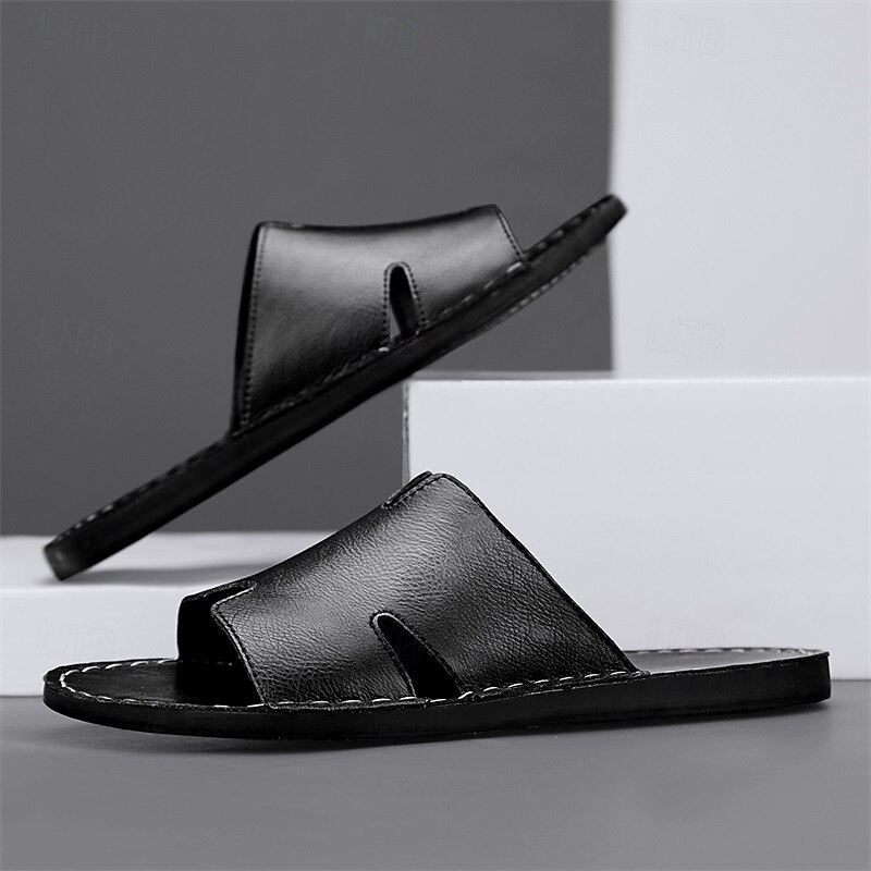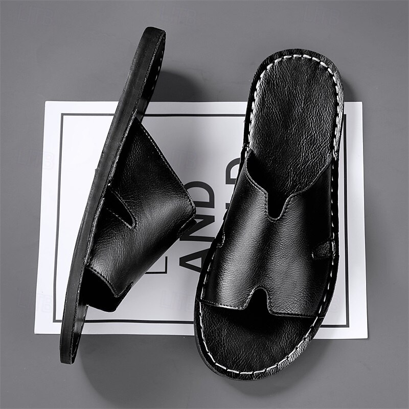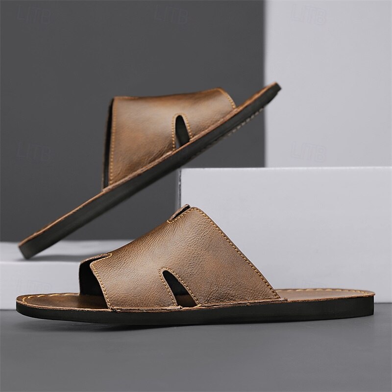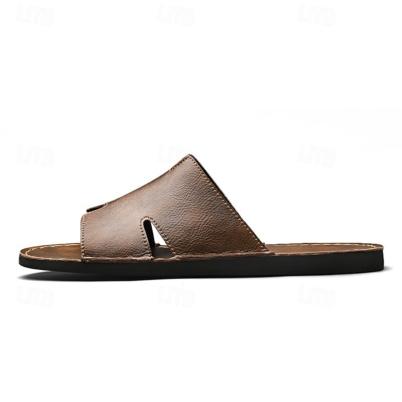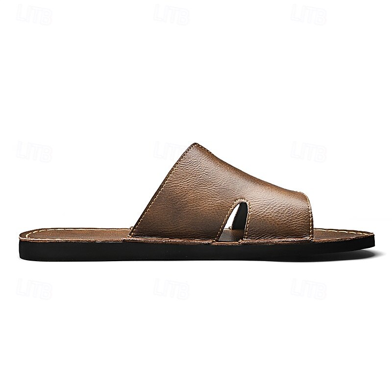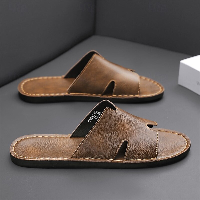 Why Choose Men's Brown Faux Leather Slide Sandals with Open Toe – relaxing Slip-On Summer Shoes for Beach, Pool or Casual Lounging?