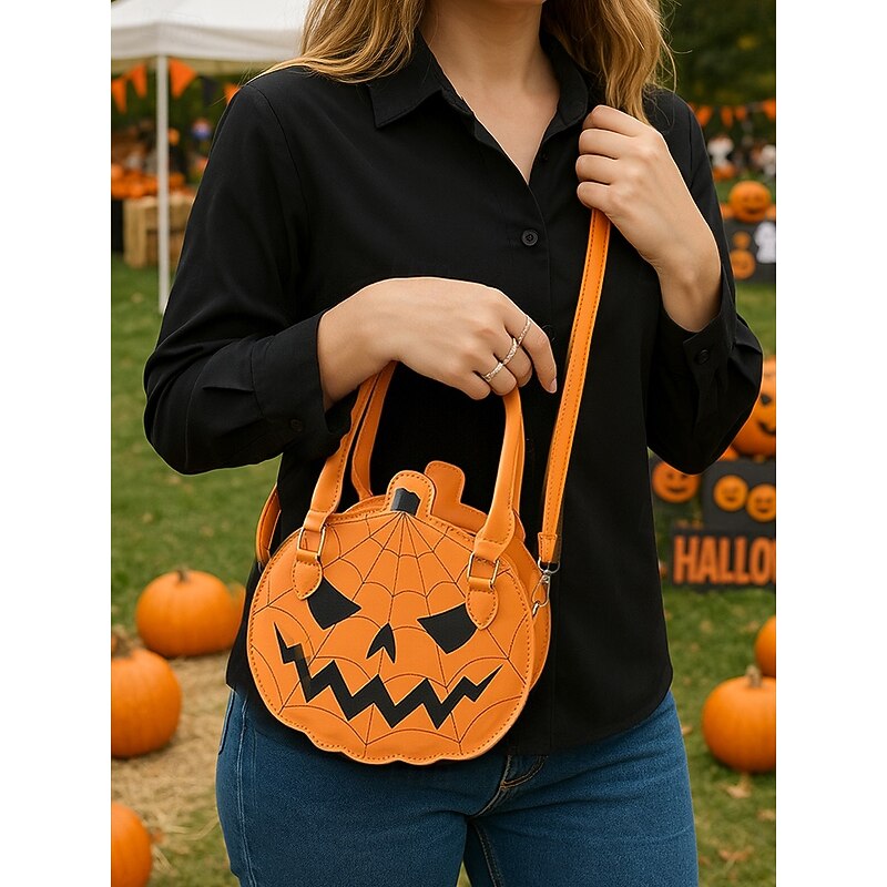 $18.99 - Women's Halloween Pumpkin Handbag – Cute Jack-O'-Lantern Shoulder Crossbody Bag with Spider Web Design, Faux Leather Tote Purse for Party, Cosplay and Holiday Outfits 2025. Shop for cheap Bags online? Buy at lightinthebox.com on sale today!