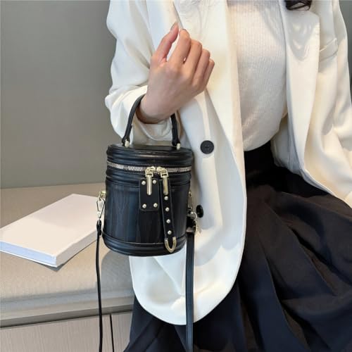 PU Leather Handbag Top Handle Cylinder Bag Crossbody Shoulder Bag for Daily Use