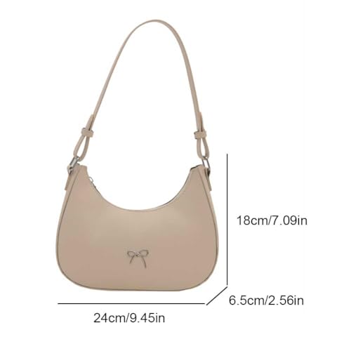 Women PU Underarm Bag with Zipper Bowknot Trendy Handbag Leather Shoulder Bag Half Moon Bag for Vacation Travel Commuting