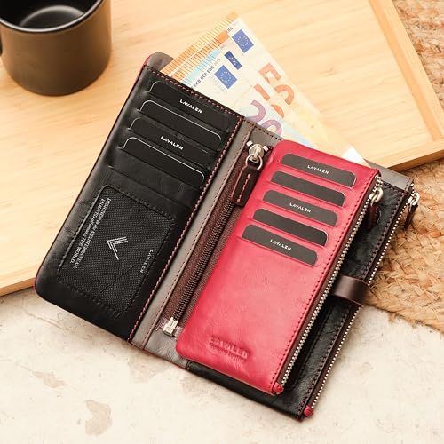 Brand: LavalenColor: Burgundy LMaterial: LeatherStyle: ModernPattern: Tie-Dyeπ Made with Genuine Leather β This women's wallet is carefully crafted with genuine leather on both the exterior and interior, offering long-lasting use and a soft, comfortable feel.π Designed with RFID-blocking material to help protect your cards from unauthorized scanning while traveling, shopping, or commuting. This red bifold wallet also features a tab with a snap closure for added security.πΌ Functional Women's Wallets: Crafted for women who need organization, this women wallet offers plenty of space with its many compartments. Handcrafted from quality leather material , it's both durable and chic for everyday use.π Modern Women's Wallets: This women's wallet combines style with practicality. Featuring multiple compartments, it's perfect for organizing your essentials. Handmade from quality leather material, it suits the modern woman's lifestyle.β Handcrafted Billeteras de Mujer : Our cute wallets for women are expertly handcrafted from quality leather material, offering elegance and function. With multiple compartments, these tarjeteros de mujer are ideal for organizing cards, cash, and more.π distinctive Women's Leather Wallets: Designed for the lady with taste, this ladies wallet is made from leather, showcasing multiple compartments. It's the ideal womens small wallet for those who value style and organization. Perfect for everyday use. top-grade materials and excellent craftsmanship ensure long-lasting durability.