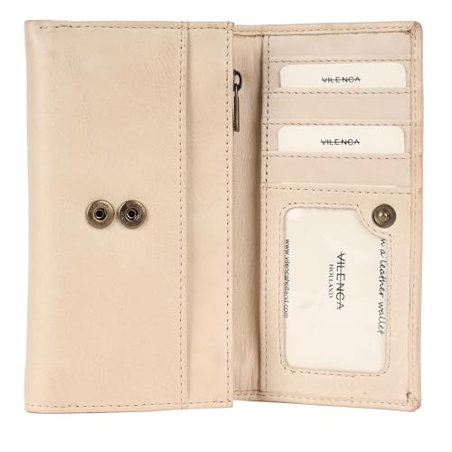 UNCOMPROMISED QUALITY: Crafted from authentic Italian washed leather, the Vilenca Holland Boho Studded wallet boasts rich texture and natural markings that develop a beautiful patina over time, ensuring true quality and character with every use.TIMELESS STYLE: This Wallet combines a boho-inspired, riveted design with a modern edge, making it a stylish staple for any wardrobe. Available in six elegant colors, including Beige, Black, Brown, Cognac, Navy and Red there’s a shade to suit every look and occasion.FUNCTIONAL DURABILITY: Constructed with top-quality YKK metal zippers and durable hardware, this wallet offers a reliable blend of style and strength. It's built to endure daily wear, ensuring that it stays with you for years to come.ORGANIZED SOPHISTICATION: This wallet measures 4.25 H x 6.75 L x 1 W when folded and 10.5 H x 6.75 L x 0.25 W when open. It features 16 credit card slots, two ID windows, multiple currency compartments, and a secure coin pocket—offering a balance of capacity and portability for everyday use.Thoughtful Gift Choice: This lightweight and stylish wallet makes an excellent gift for various occasions such as Thanksgiving, Valentine's Day, birthdays, and anniversaries. It's a practical accessory for shopping, working, traveling, or vacationing. Perfect for everyday use. High quality materials and excellent craftsmanship ensure long-lasting durability.