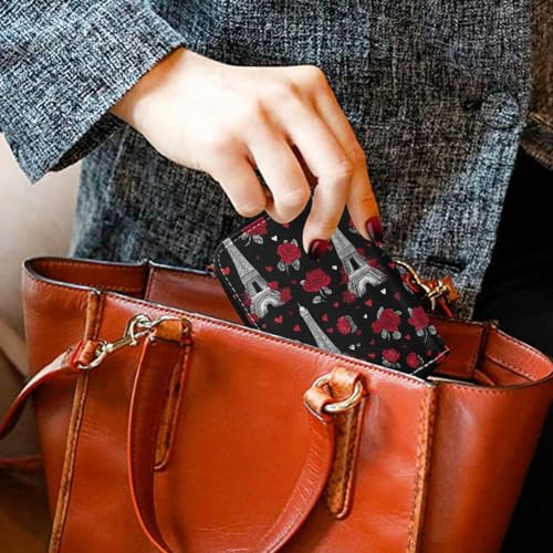 More information about RFID Credit Card Wallet Eiffel Tower Rose Red Black PU Leather Purse Case with Zipper Card Holder for Women Girls